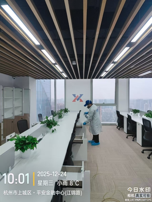 为保障员工办公健康,规避甲醛等有害气体对员工身体及企业运营的影响,贵公司委托我们专业除醛团队开展全区域标准化除醛治理工作。本次针对工装空间污染源密集、人员流动大、使用频率高的特性,实施“精准勘测-定制方案-分层施工-合规验收”的全闭环服务,最终实现室内空气质量全面达标,为企业员工筑牢办公健康防线。